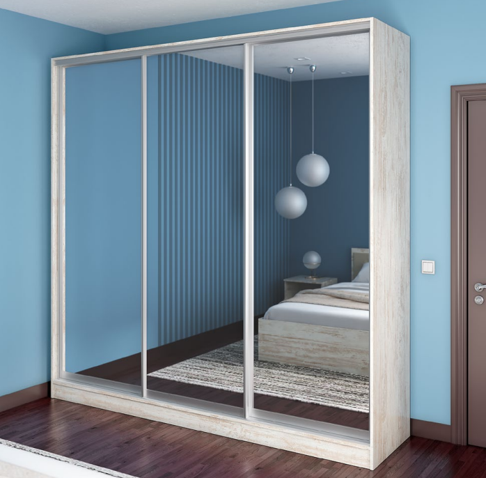Фасад шафи: 3 дзеркала. Можливі варіанти фасадів: дзеркало, ДСП, піскоматування, фотодрук, комбіновані варіанти.