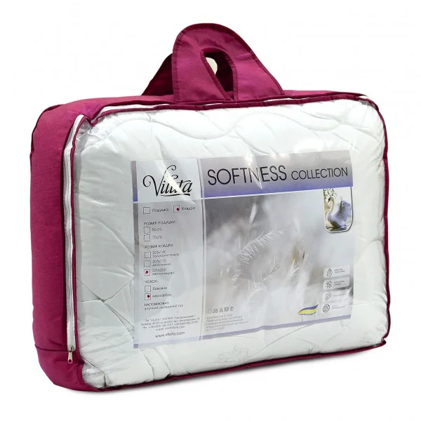 Ковдри з колекції "Soft" відносяться до категорії зимових теплих ковдр. Виконані з екологічно чистих матеріалів і мають здатність не вбирати запах і пил, служать надійним захистом від мікроорганізмів, що викликають алергію. Наповнювач штучний лебединий пух отримують багаторазовим вспушенням тонкого силіконізоване волокна. Такий матеріал дуже легкий, м'який, має високі теплозберігаючі властивості, не вбирає вологу, витримує високі експлуатаційні навантаження. Така ковдра відмінно вам послужить в холодну зиму.