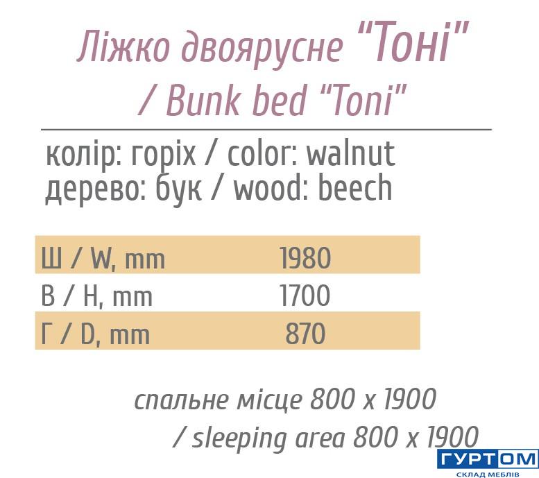 Ліжко Тоні двоярусне з ламелями TМ «Меблі-Сервіс» БУК
