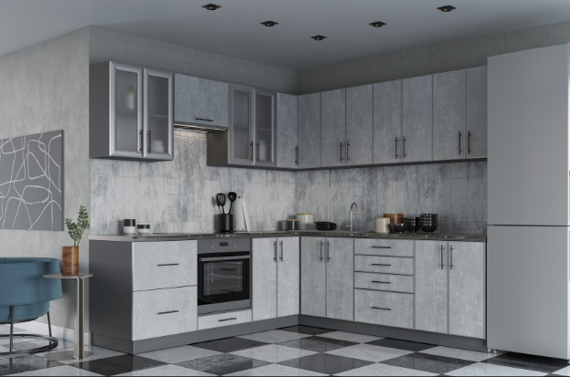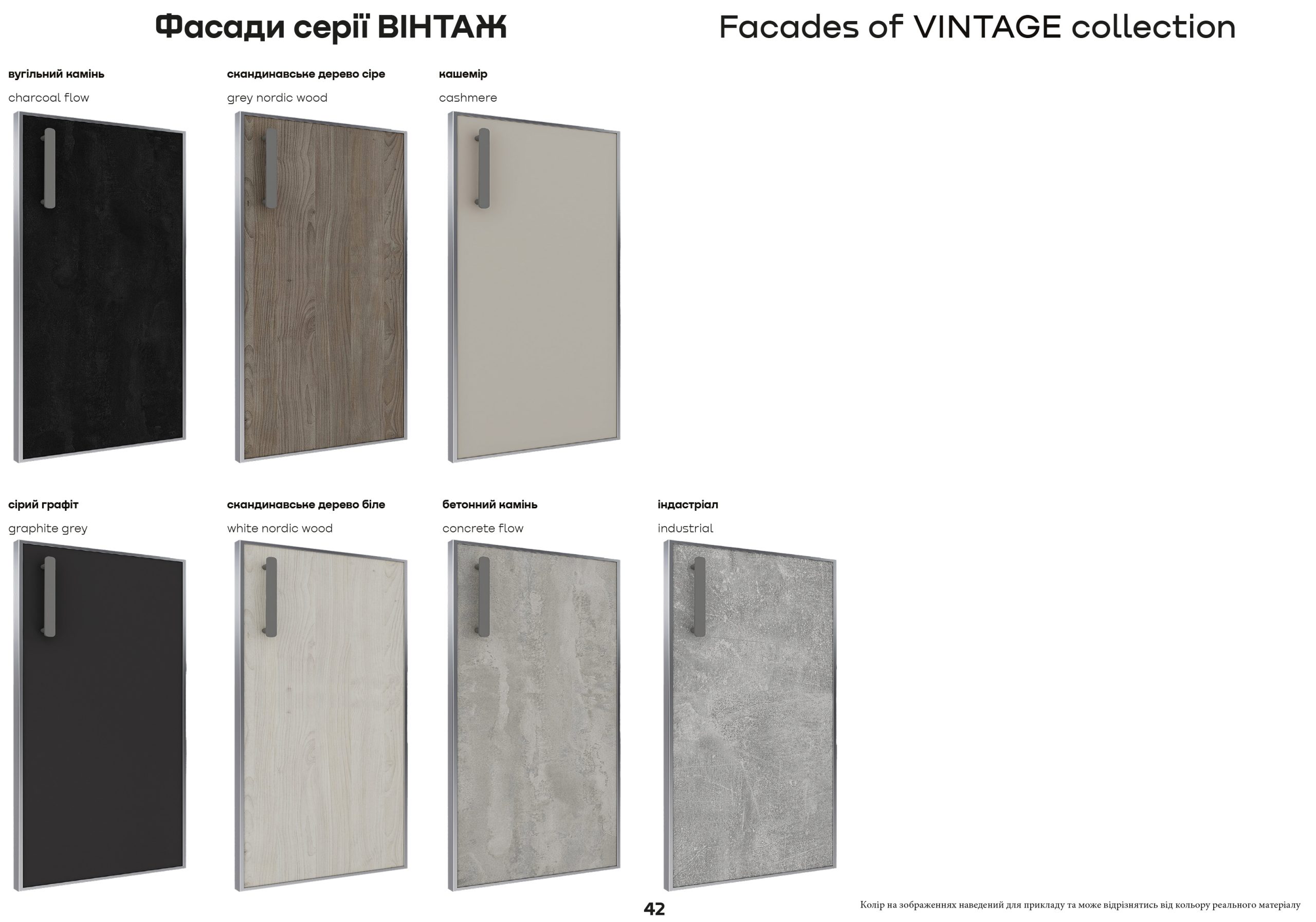 - Фасад: ЛДСП 18 мм в алюмінієвій рамці, що надає кухні оригінальності та естетичної довершеності. Доступна у 7 кольора