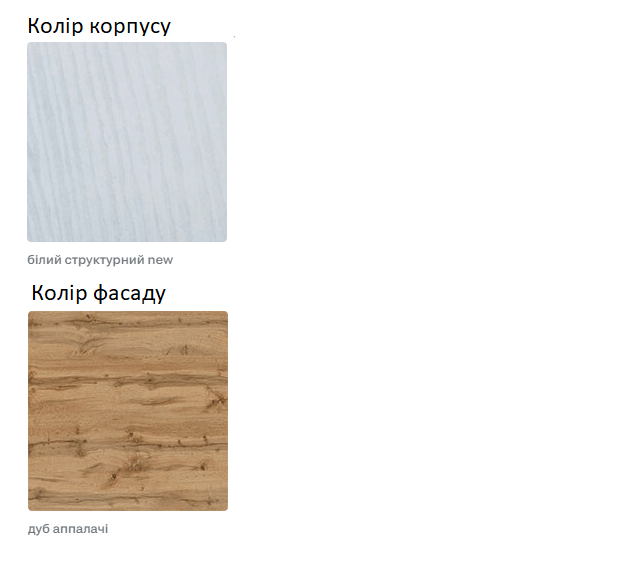 - Фасад: ЛДСП 16 мм без ручок. колір дуб аппалачі