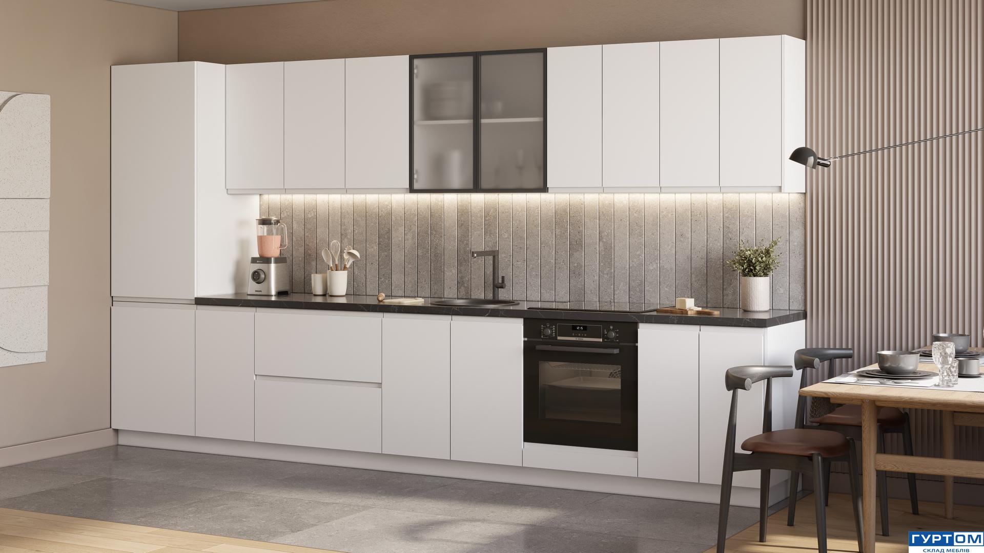 Ручка чорна поєднується лише з кольорами фасадів: Білий / Дуб королівський / Ательє світлий / Дуб сільверджек вінтажний / Зелений димчастий / Іриска / Сахара / Сіра мишка / Сатин / Сутінковий блакитний / Глиняний сірий.