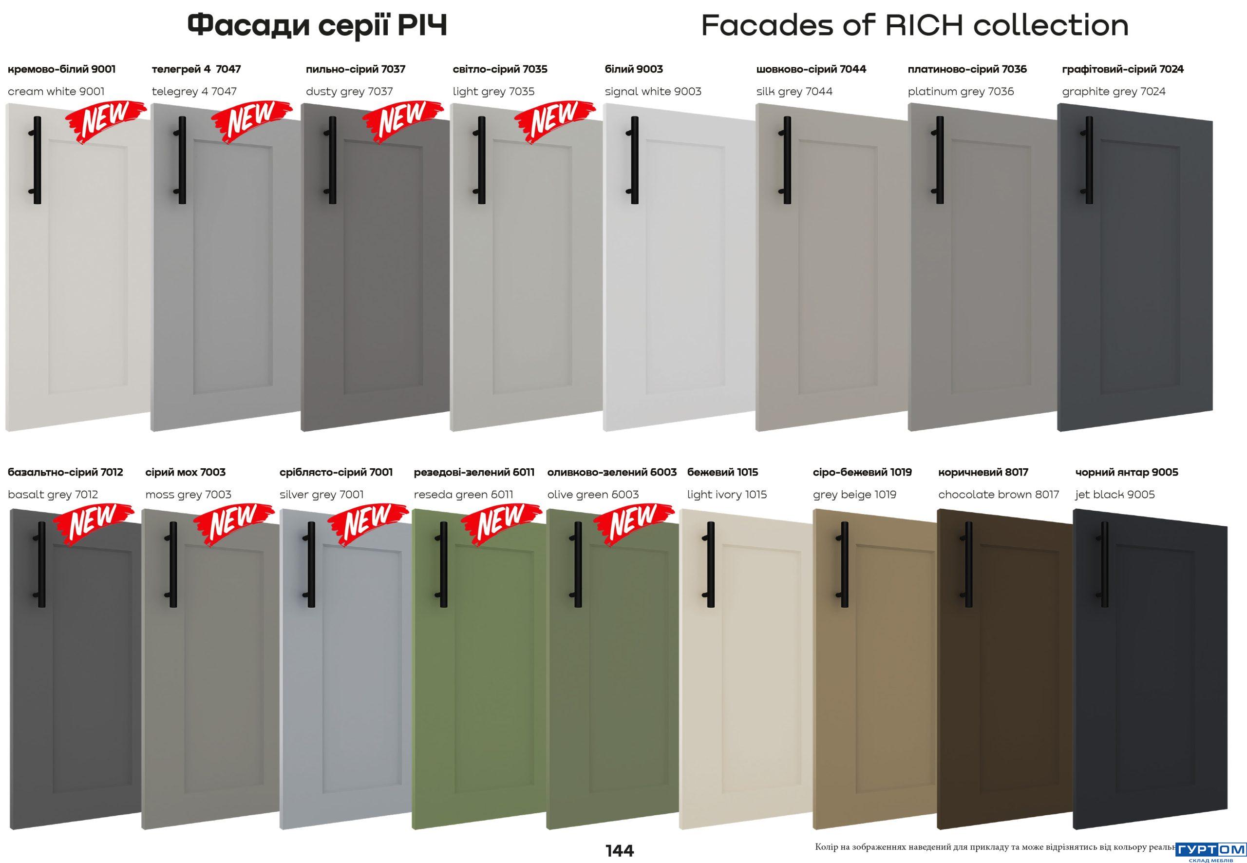 - Фасад: матовий фарбований МДФ 16 мм з фрезеруванням типу «Екран»