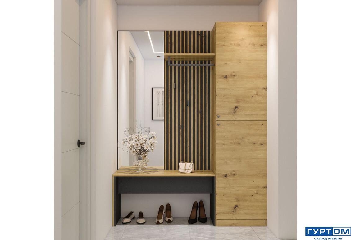 - Тип передпокою: З шафою із розкривними дверима. Це забезпечує зручний доступ до ваших речей та оптимальне використання простору.