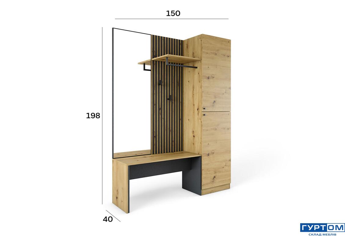 - Розмір: Ширина 150 см, Висота 198 см, Глибина 40 см. Це дозволяє зручно розмістити передпокій у будь-якому просторі, не займаючи багато місця.
