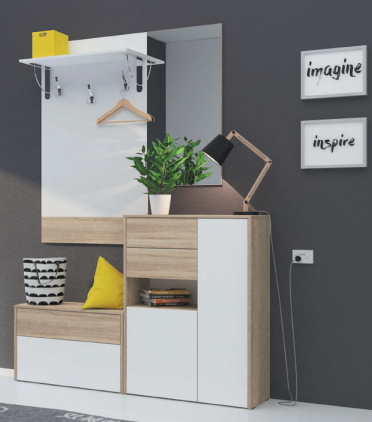 Передпокій - це перше, що ми бачимо, увійшовши в будинок. Саме ця частина житла створює перше враження про нього і його господарів. Акуратний передпокій, в якому немає зайвих речей, а взуття та верхній одяг на своїх місцях, завжди виглядає гідно і створює відчуття комфорту. Narine (Нарiн)- фнукціональний і компактний комплект для передпокою з м'яким лаконічним дизайном. У цьому передпокої є все необхідне для акуратного розміщення верхнього одягу та інших речей.