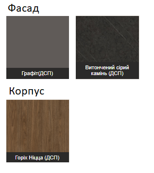 - Фасад ДСП: Графіт / Витончений сірий камінь.