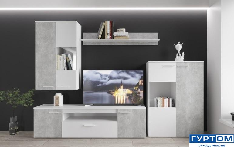 Розмір модулів: Пенал навісний Д-60 Г-30 В-98,5; Тумба під ТВ Д-160, Г-350, В-45; Вітрина підлогова Д-80 Г-30 В-110