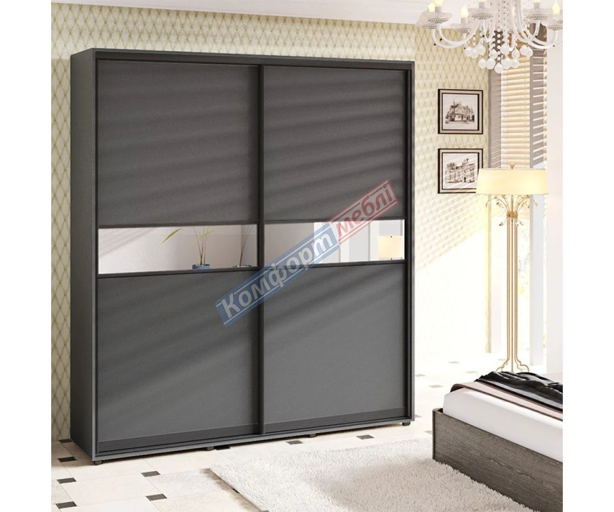Шафа-купе 2Д 1700*2400*450 (ДСП+ дзеркало модель 2 ) графіт ТМ Комфорт Меблі