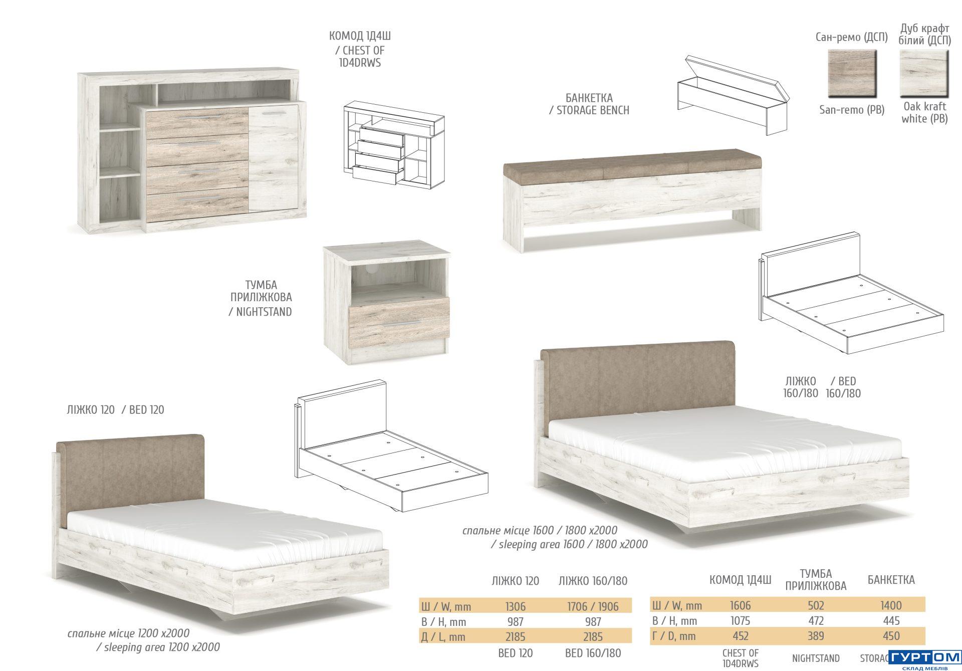 Ліжко Кім ламель 1600 (без ламелей) ТМ "Меблі-Сервіс"