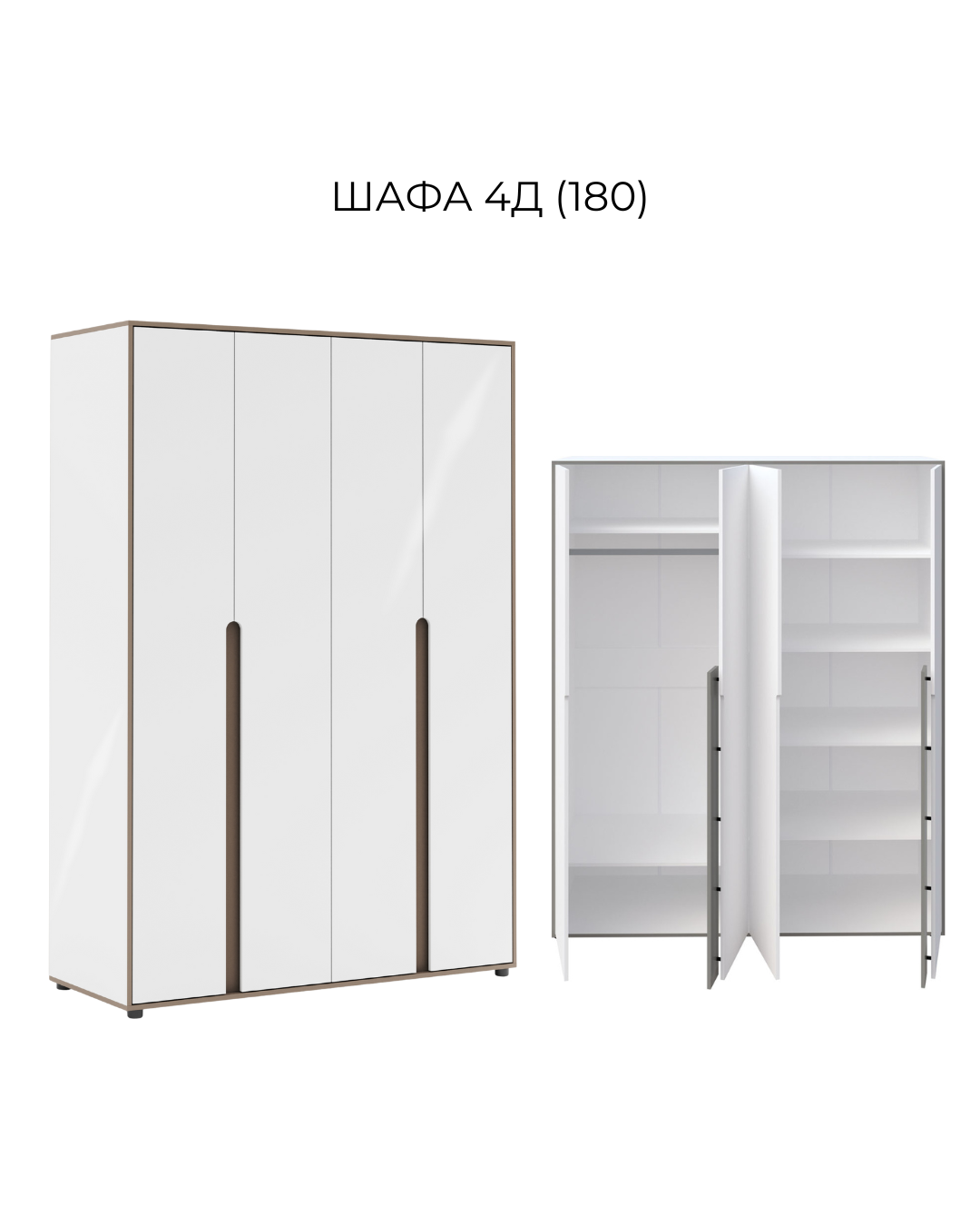 Шафа Світ Меблів Лінда 4-дверна 180 см ( 1800 х 2200 х 550 ) Німфеа Альба, лак, вставки тоффі – 1 шт;