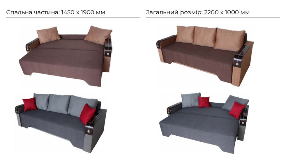 - Спальне місце: 1450х1900 мм