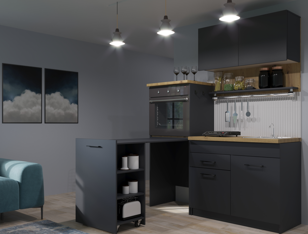 - 03: УНІВЕРСАЛЬНЕ ПРИЛАДДЯ : місце для мікрохвильовки, яке легко перетворюється у нішу для духової шафи