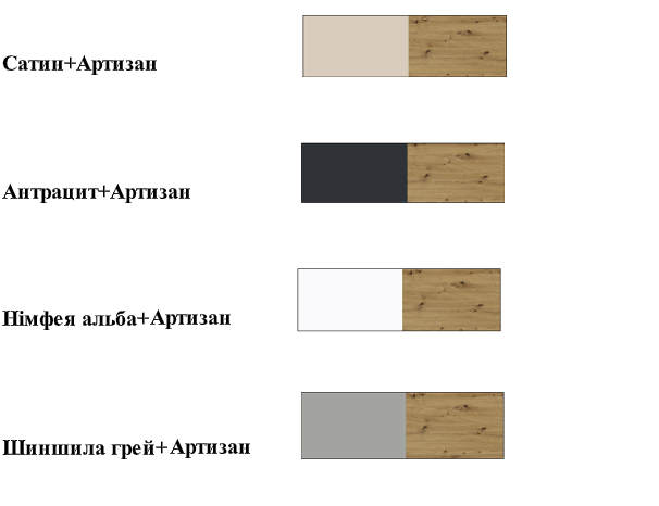 - Кольори: Сатин/Артизан, Антрацит/Артизан, Німфея Альба/Артизан, Шиншила Грей/Артизан