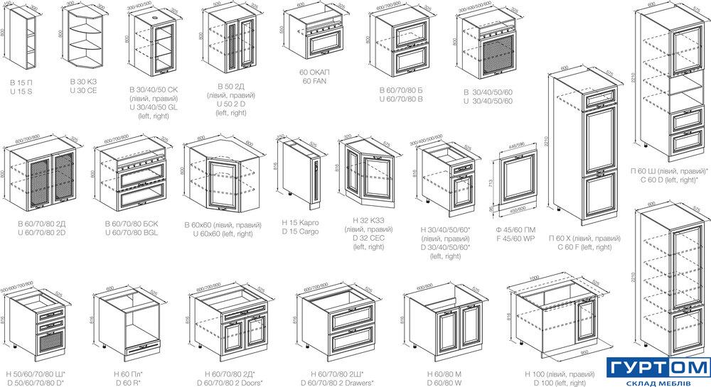 - Фасад: прованс світлий / прованс темний (патіна, МДФ)