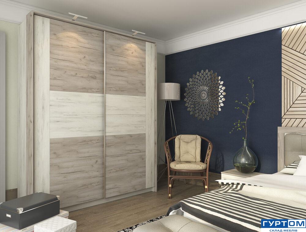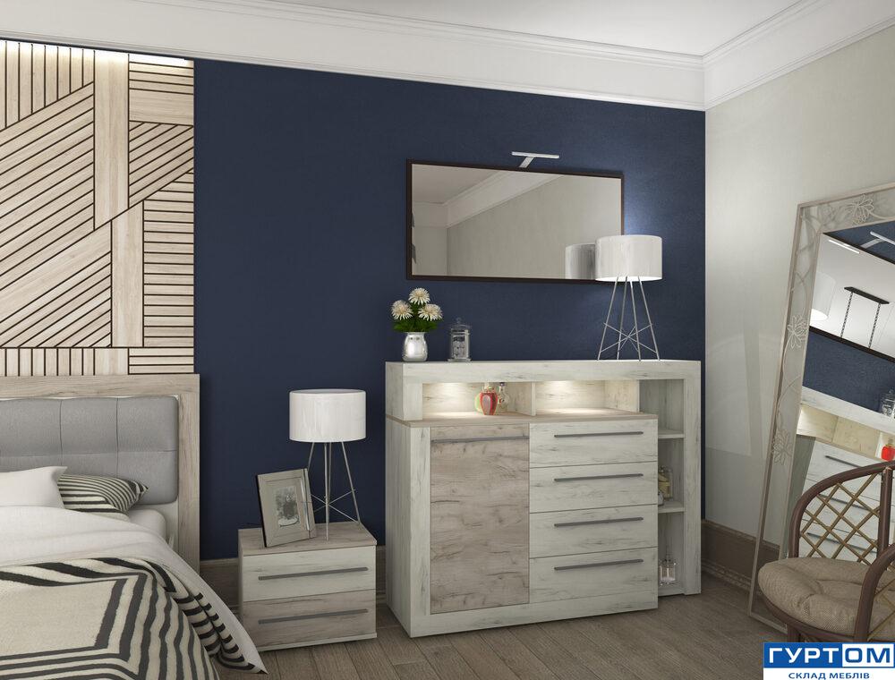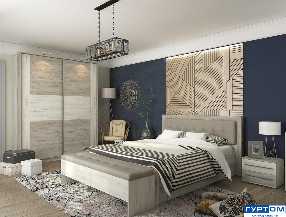 Спальня Мілана виконана із оригінального поєднання декорів ЛДСП «дуб крафт сірий» та «дуб крафт білий». Біля ліжка спальні Мілана можуть бути додані дві висувні шухляди на меблевих колесах для оптимізації простору.