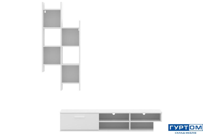 - Розмір модулів: Стелаж навісний - В-156; Тумба під ТВ - Д-120 Г-35 В - 52