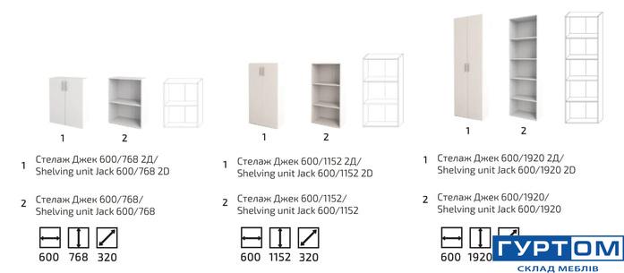 Бажаєте створити максимально функціональний простір у кімнаті? В цьому Вам допоможуть модульні стелажі Джек закритого та відкритого типу. Відкрита конструкція надасть Вам декілька містких полиць, на які Ви можете розмістити усе найкраще: фото, вазони, книги чи декоративні дрібнички. Закрита подарує можливість розмістити побутові речі.