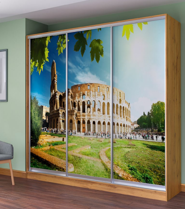 Фасад шафи: 3 фотодруки. Можливі варіанти фасадів: дзеркало, ДСП, піскоматування, фотодрук, комбіновані варіанти.