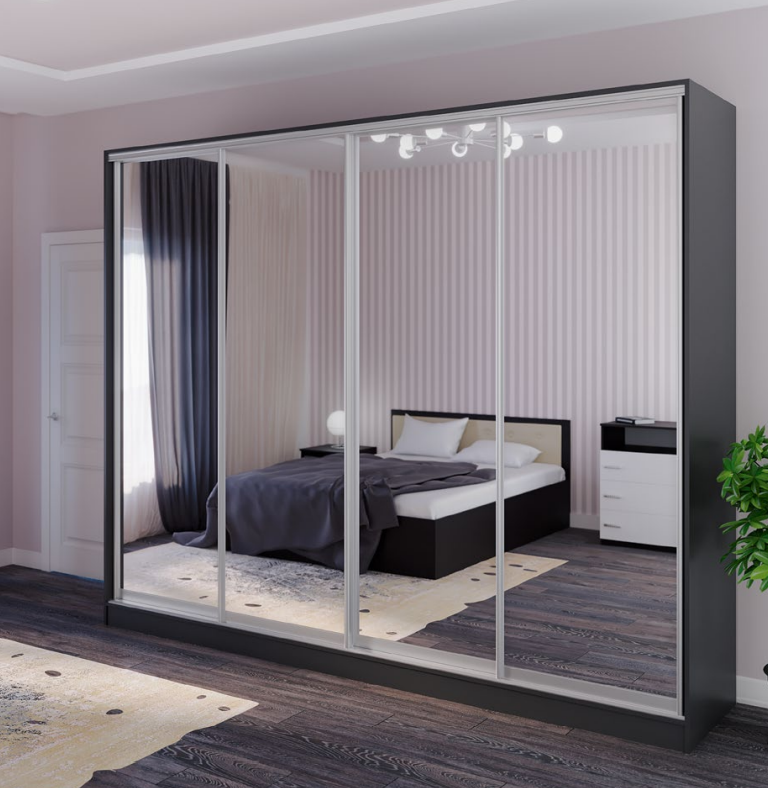 Фасад шафи: 4 дзеркала. Можливі варіанти фасадів: дзеркало, ДСП, піскоматування, фотодрук, комбіновані варіанти.