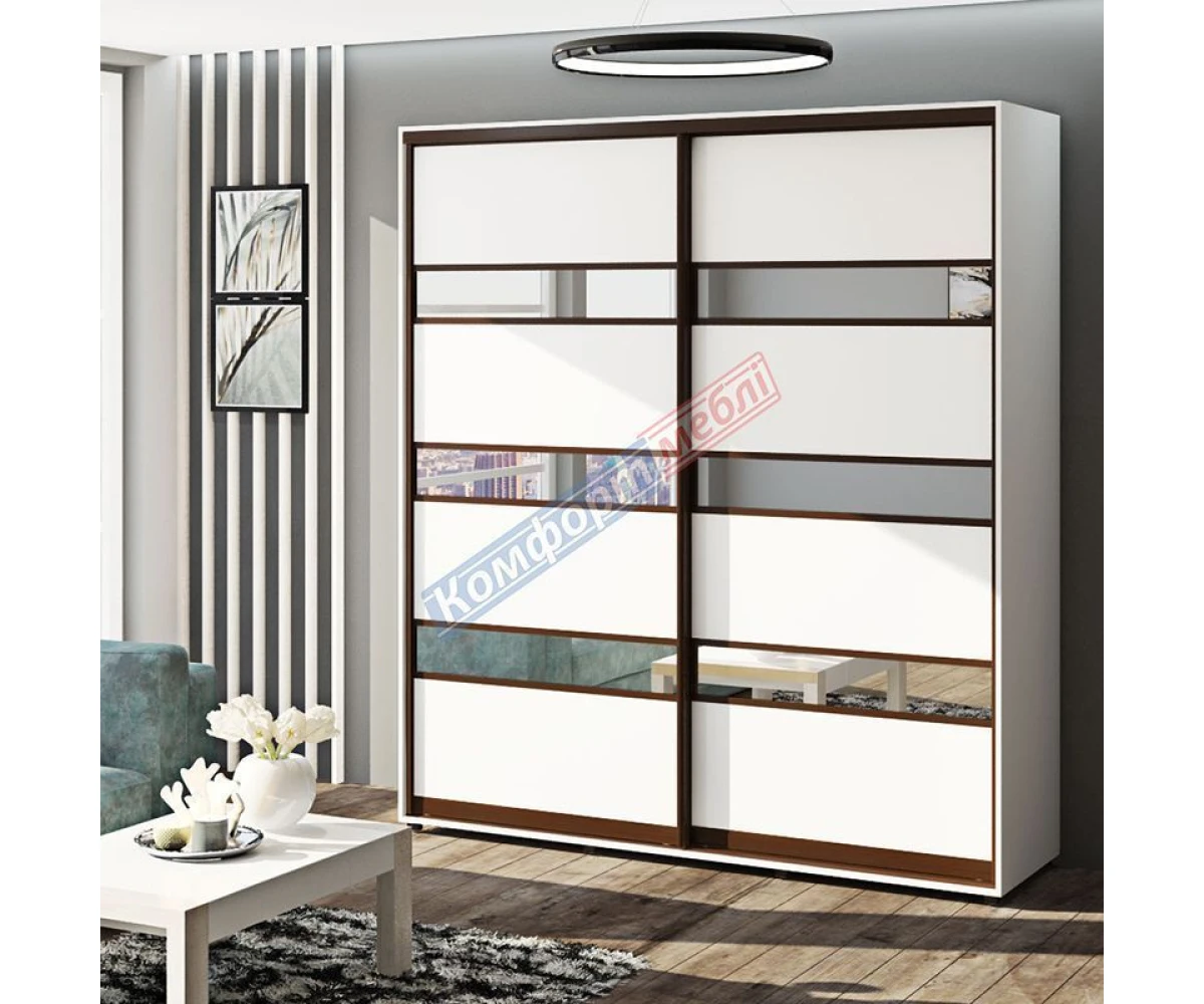 Шафа-купе 2Д 1900*2200*600 (ДСП+ дзеркало модель 4 ) білий ТМ Комфорт Меблі