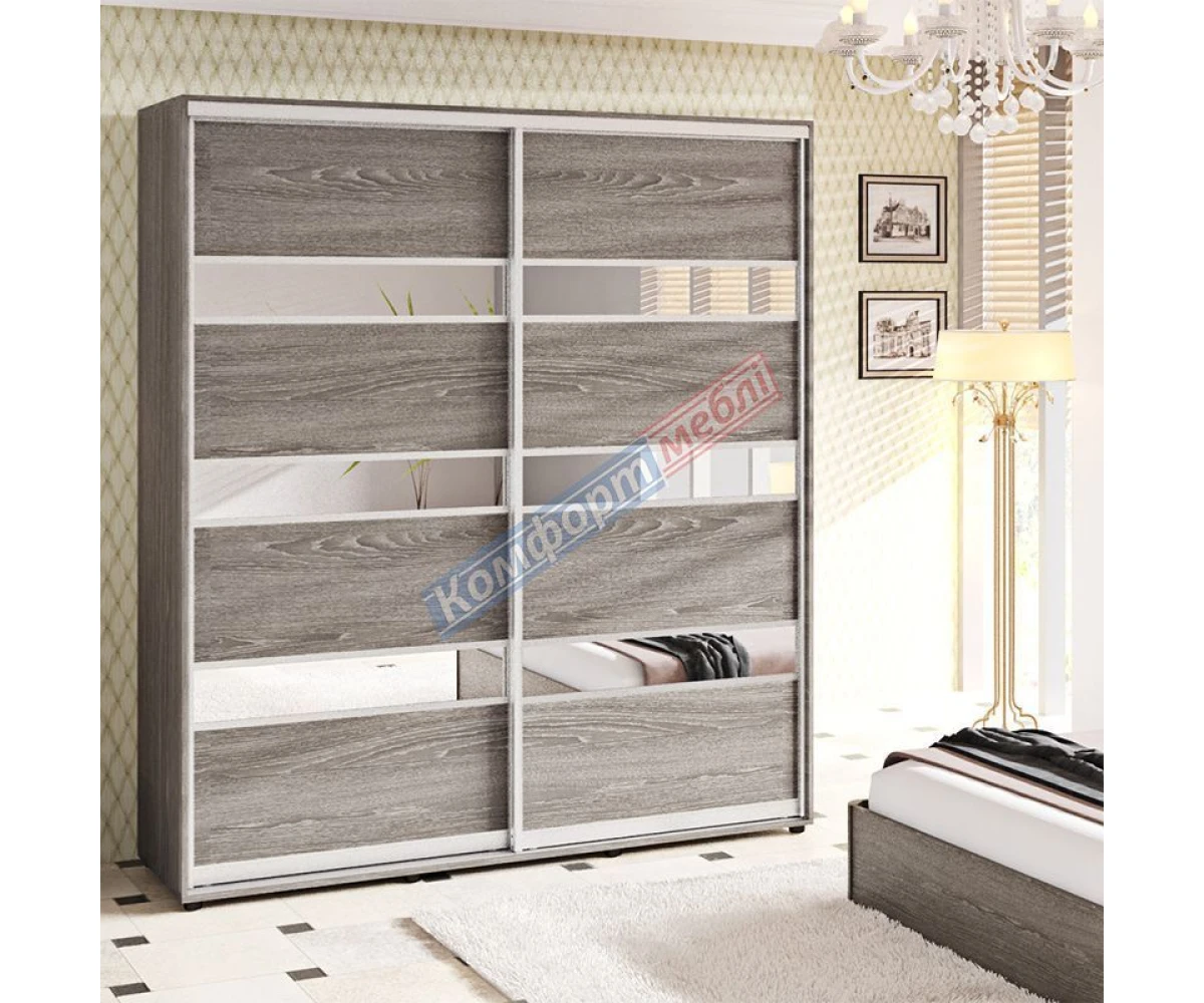 Коментарі та відгуки про Шафа-купе 2Д 2000*2400*600 (ДСП+ дзеркало модель 4 ) дуб трюфель ТМ Комфорт Меблі, а також питання і обговорення цього продукту:
