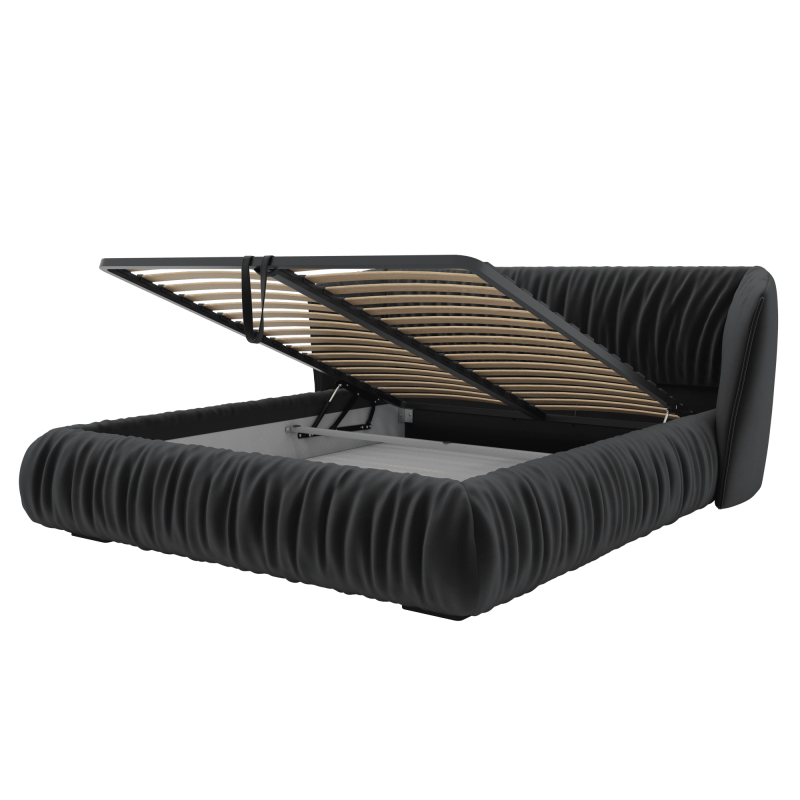 Ліжко-подіум Marko від виробника Sofyno з великим, м'яким узголів'ям - це витончена модель, яка створить атмосферу комфорту і затишку у вашій спальні. Вона доступна в різних варіантах оббивки, які представлені на сайті Matroluxe. У даній моделі передбачено підйомний механізм, що полегшує доступ до ящика для білизни.