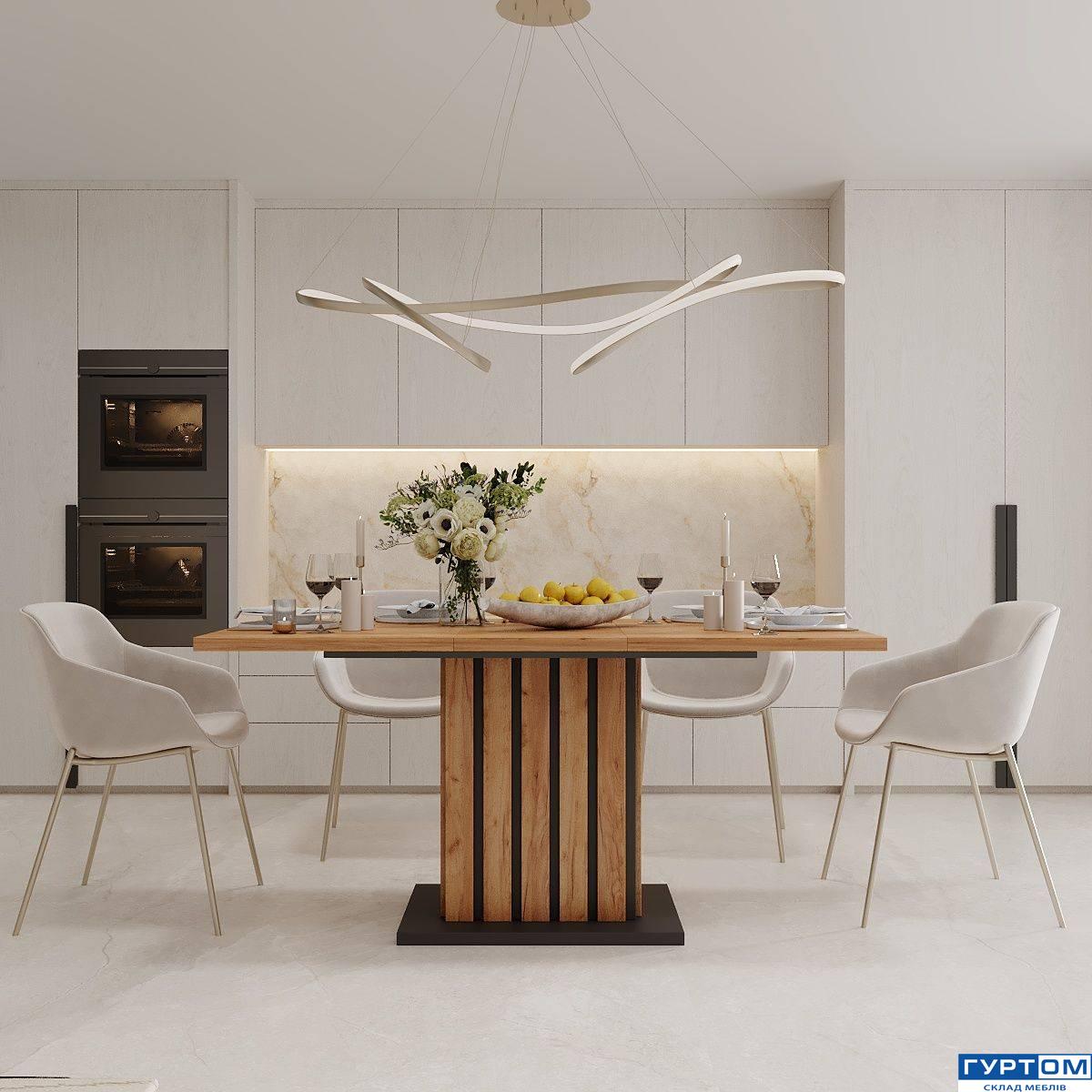 - Особливу увагу заслуговує практичний механізм трансформації. Він дозволяє швидко та без зусиль розкласти стіл, щоб розмістити від шести до восьми гостей. У повсякденному житті він компактний і не займає зайвого простору, а під час свят перетворюється на центр гостинності та теплих розмов.